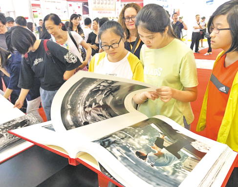 第26届北京国际图书博览会上,读者认真翻看大型画册《中国》